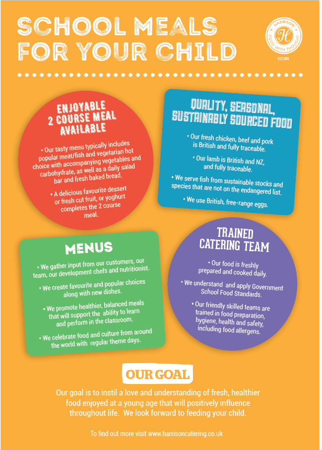 We work with Harrison catering company, and our lunch menus operate on a three-week rotation, so that the pupils have variety in their meals.